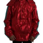 Red Nylon Hooded Pullover Sweatshirt Jacket