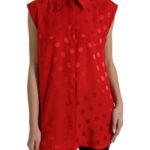 Red Polka Dot Sleeveless Collared Blouse Top