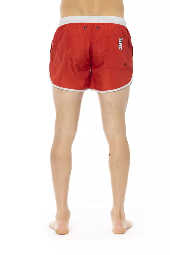 Red Polyester Men Swim Short