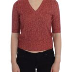 Red Wool Tweed Short Sleeve Sweater Pullover