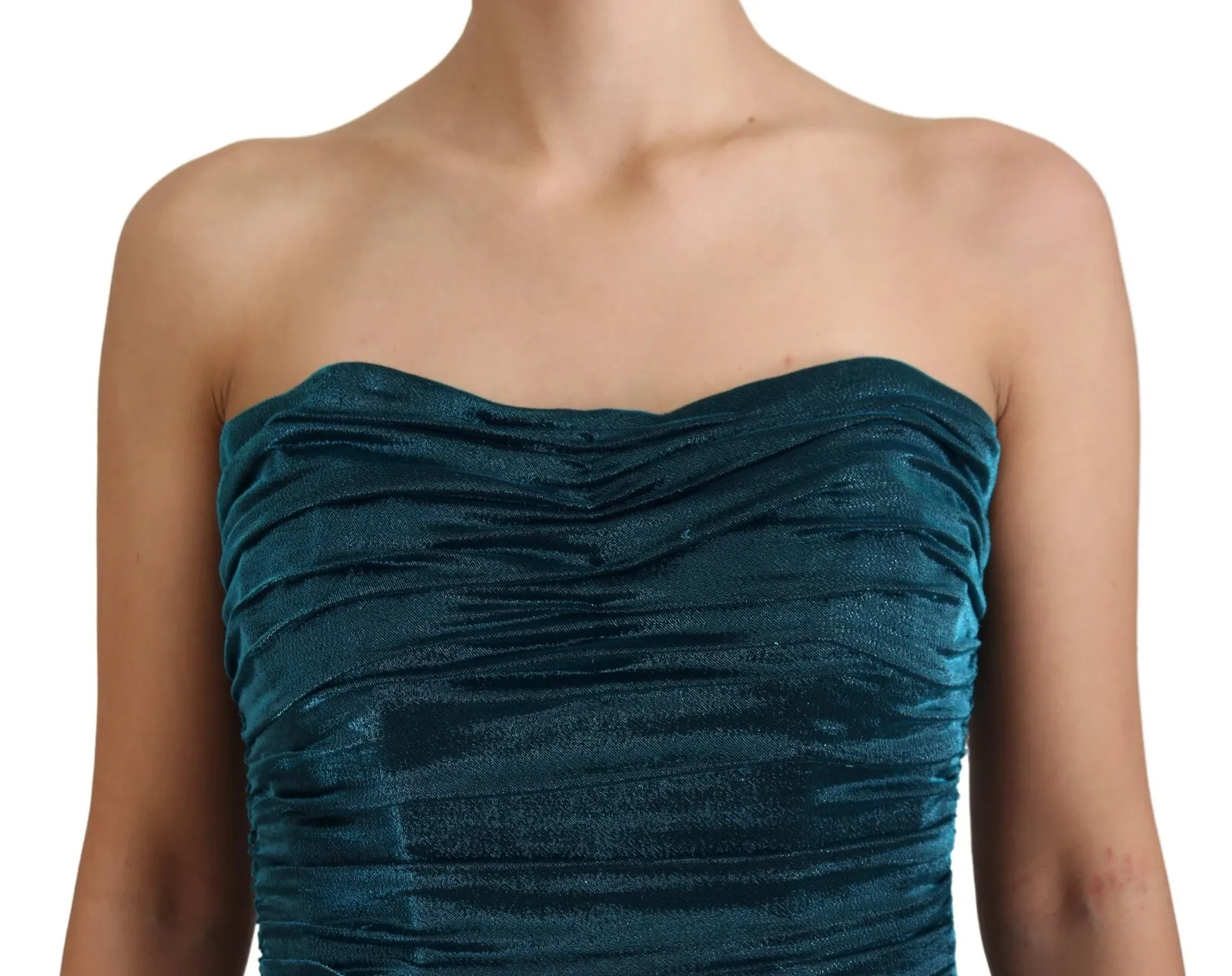 Silk Blend Blue Satin Fitted Strapless Dress