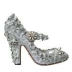 Silver Floral Crystal Mary Jane Pumps Shoes