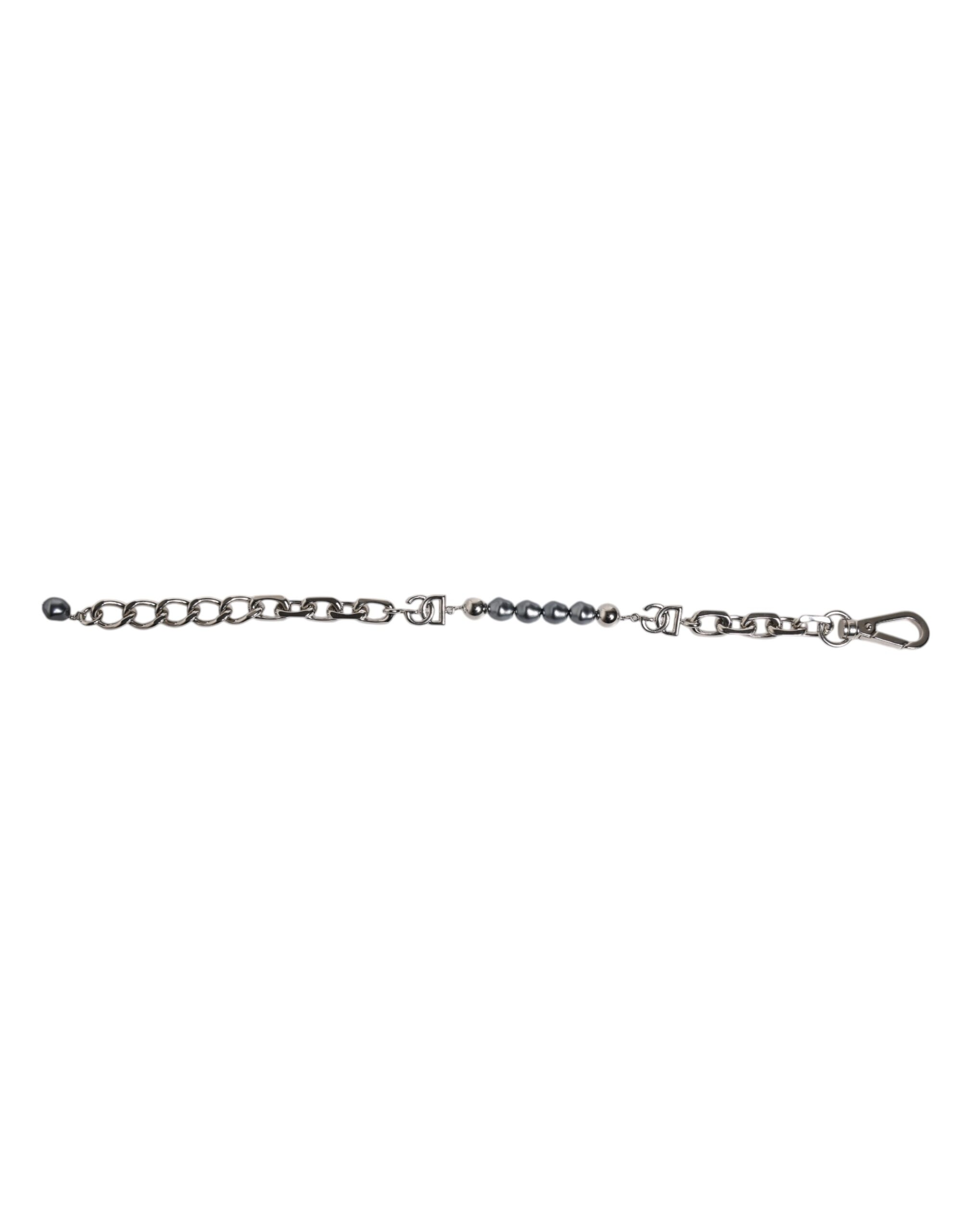 Gorgeous brand new, 100% Authentic Dolce & Gabbana silver-tone chain bracelet. Featuring an intricate mix of polished metal links and signature DG logo details, this statement piece is adorned with lustrous dark-hued pearls for a refined yet modern touch. Model: Chain bracelet Materials: Silver-tone metal, pearls Color: Silver Length: 35 cm Lobster clasp with adjustable chain Logo details Chunky chain with pearl embellishments Made in Italy