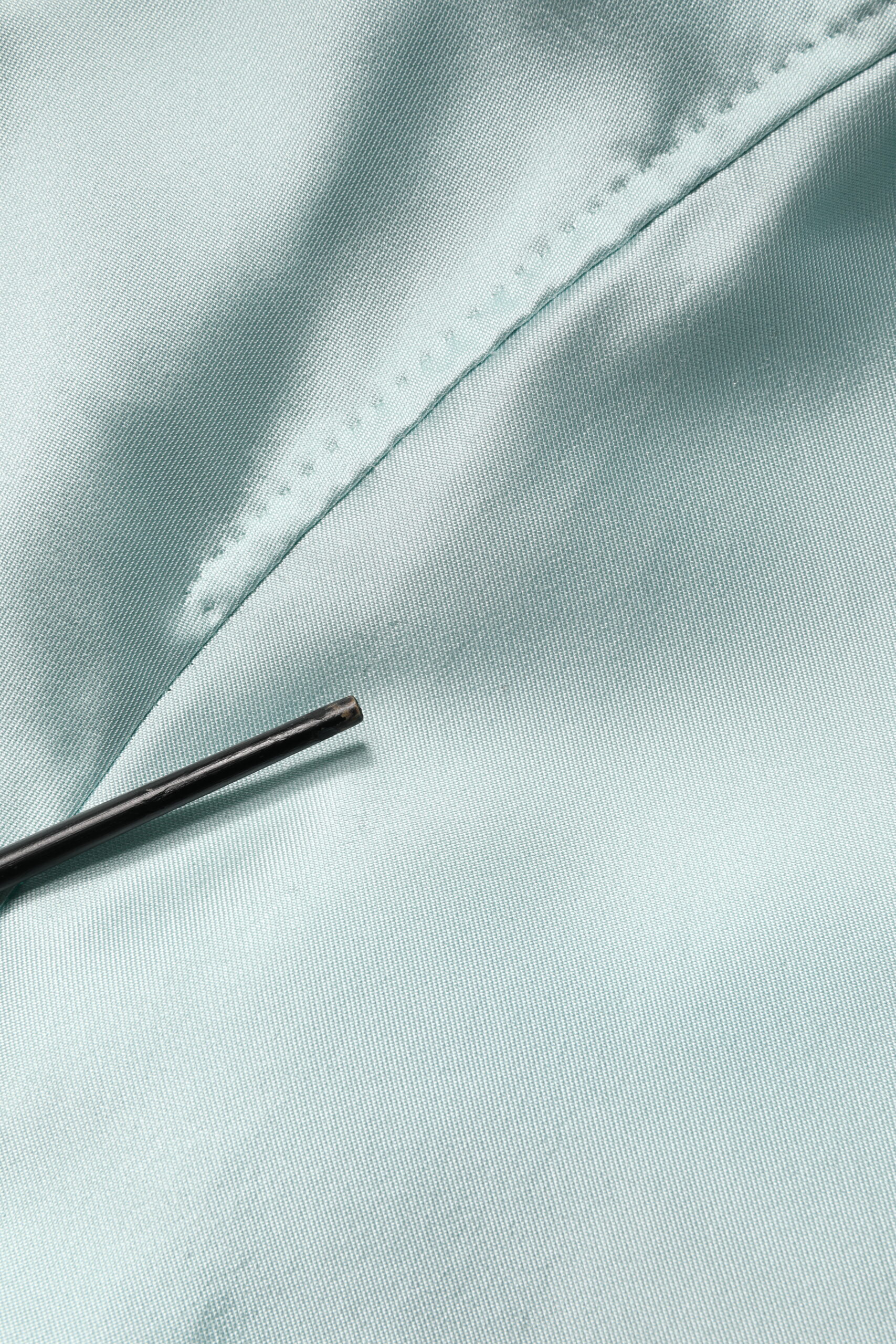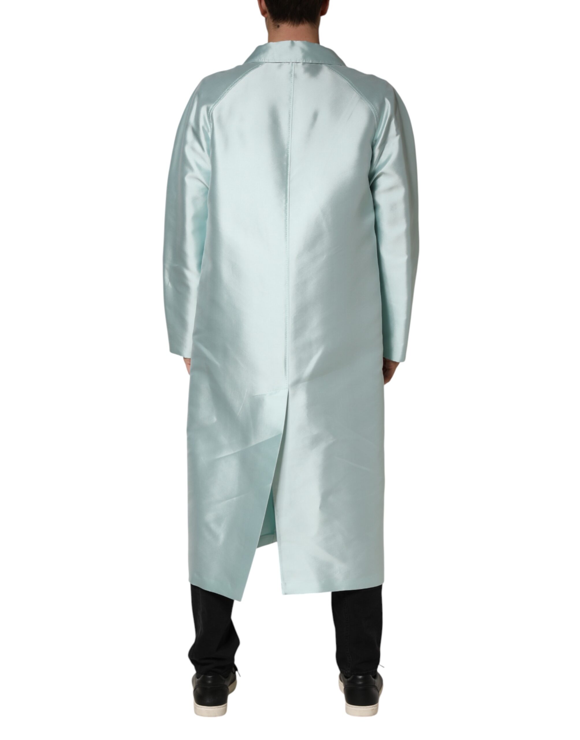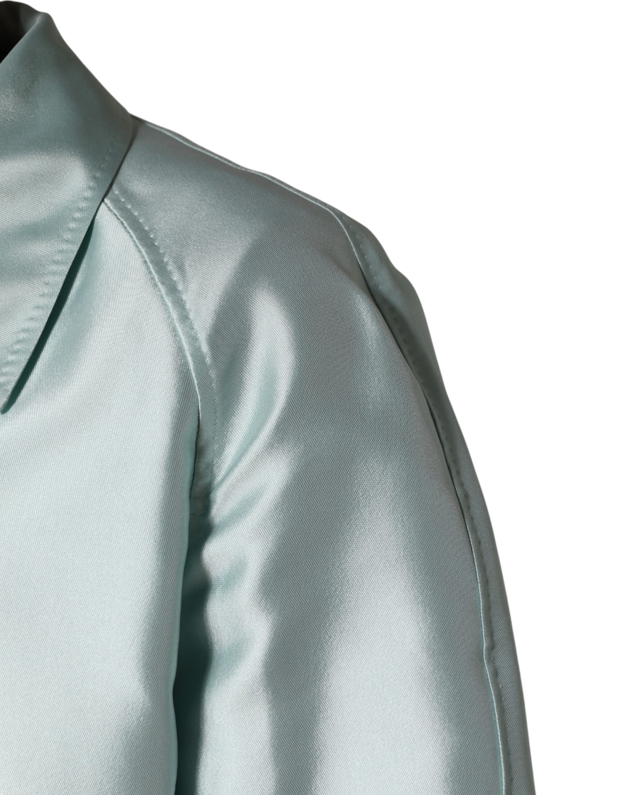 Teal Satin Collared Long Trench Coat Jacket