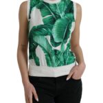 White Banana Leaf Print Crew Neck Tank Top