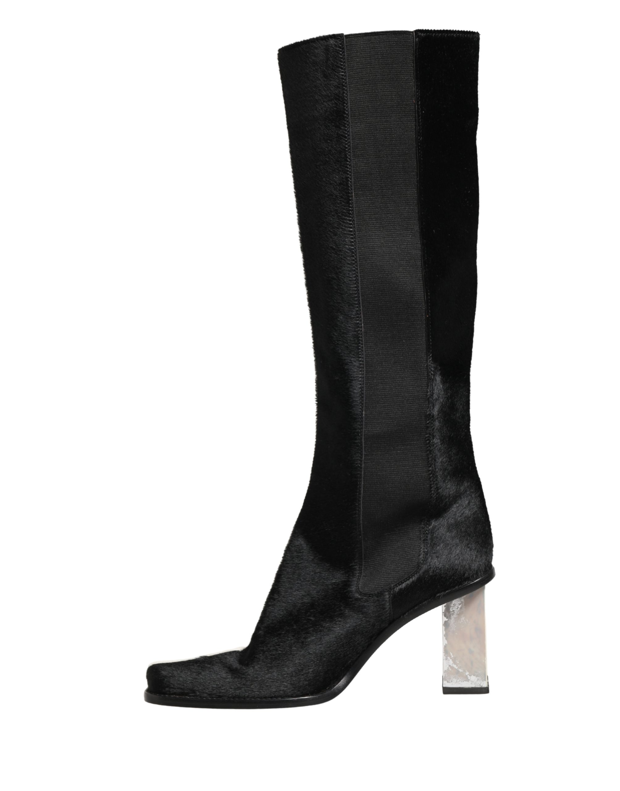 White Black Leather Knee High Boots Shoes
