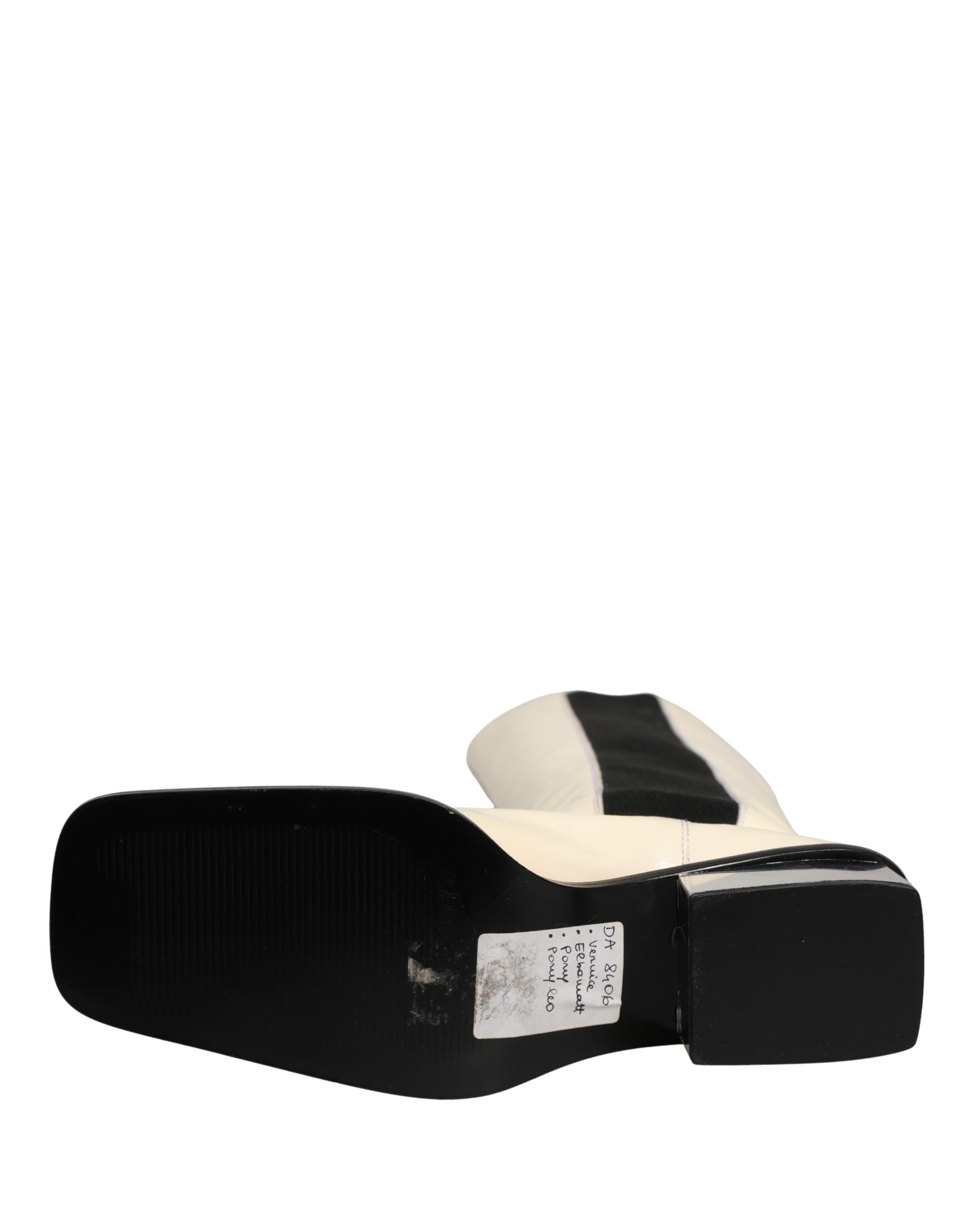 White Black Leather Knee High Boots Shoes