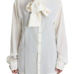 White Blouse Ascot Collar Shirt Silk Top