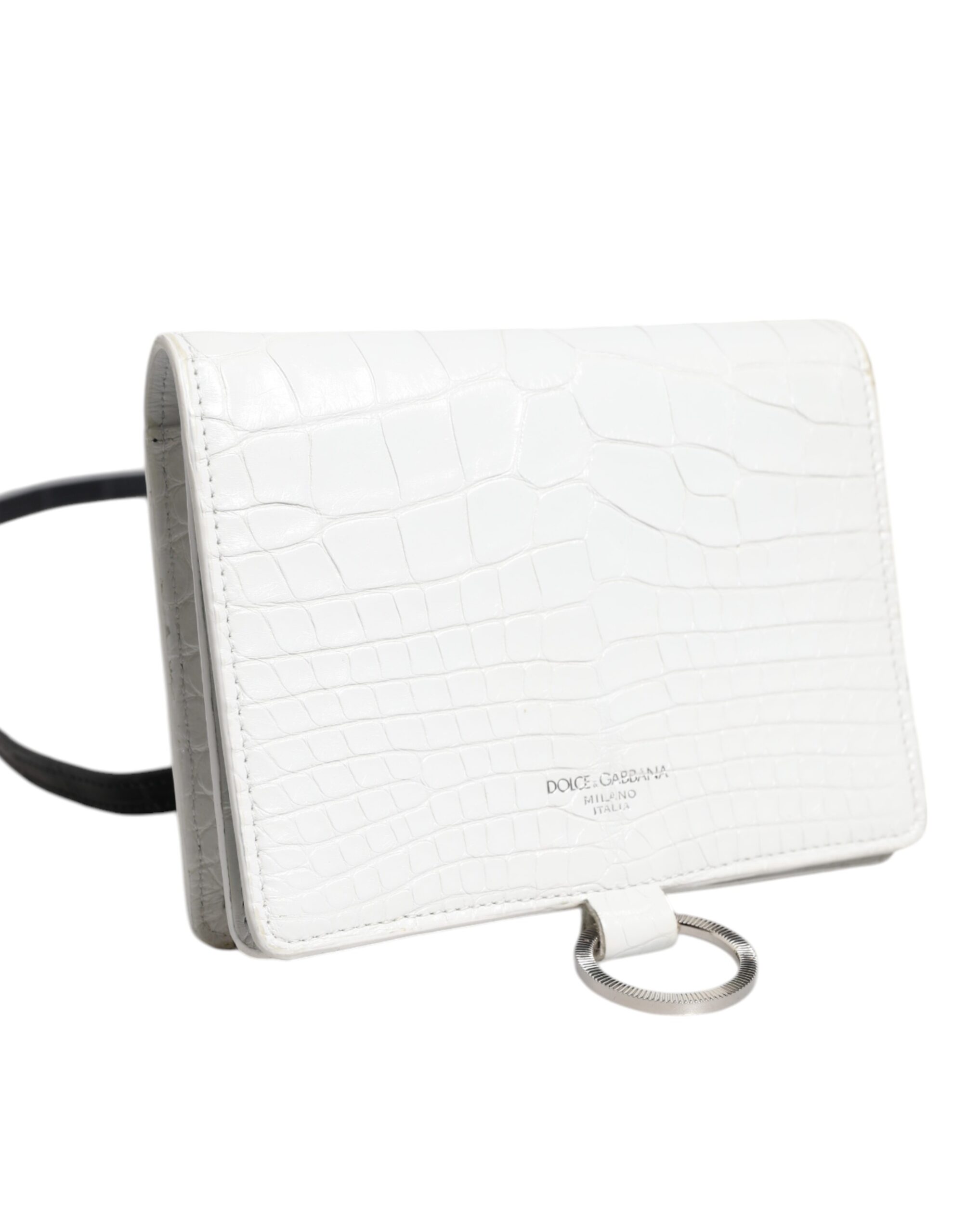 White Blue Leather Bifold Crossbody Sling Wallet