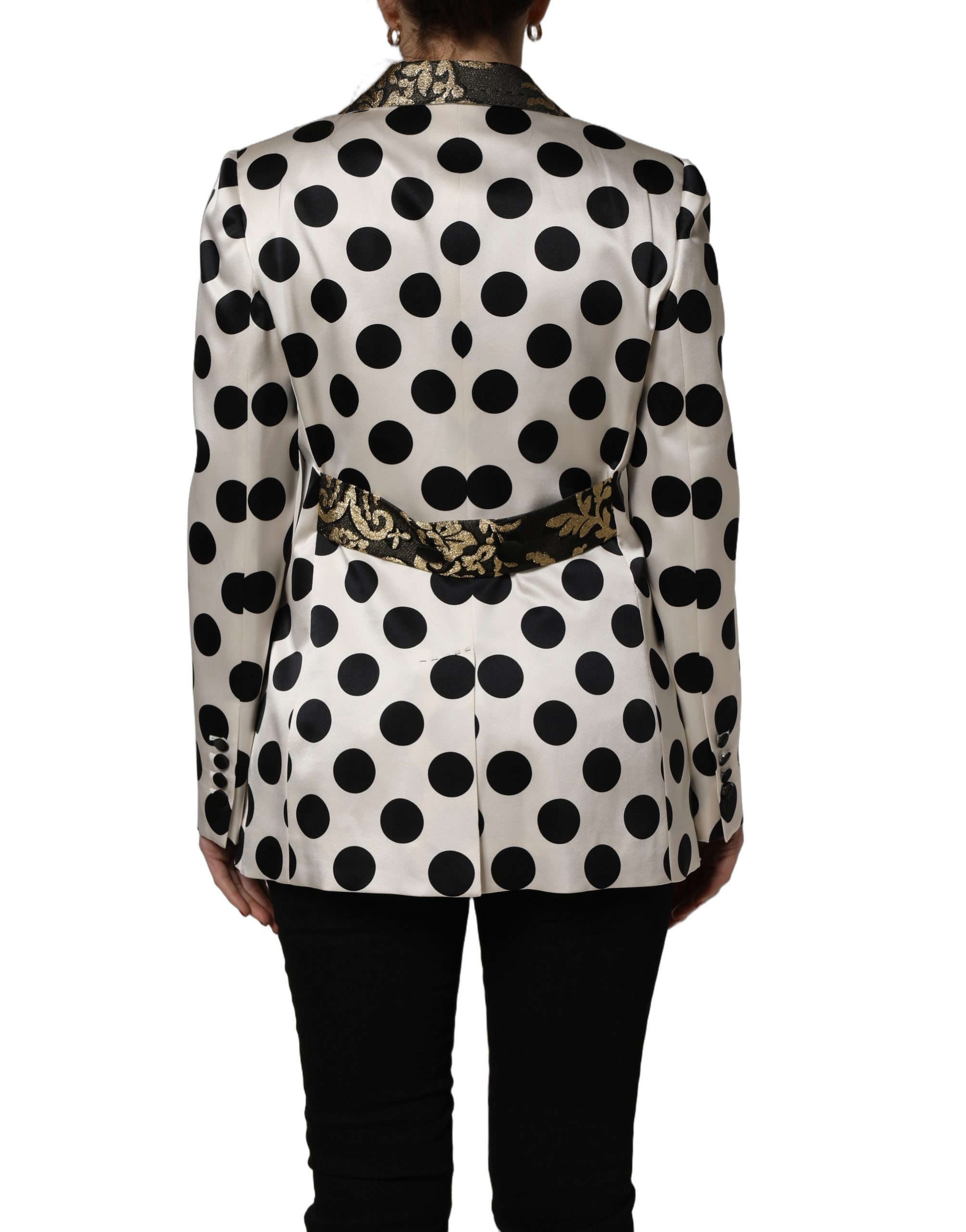 White Brocade Polka-Dot Print Blazer Jacket