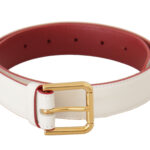 White Calf Leather Two-Toned Gold Metal Buckle Belt