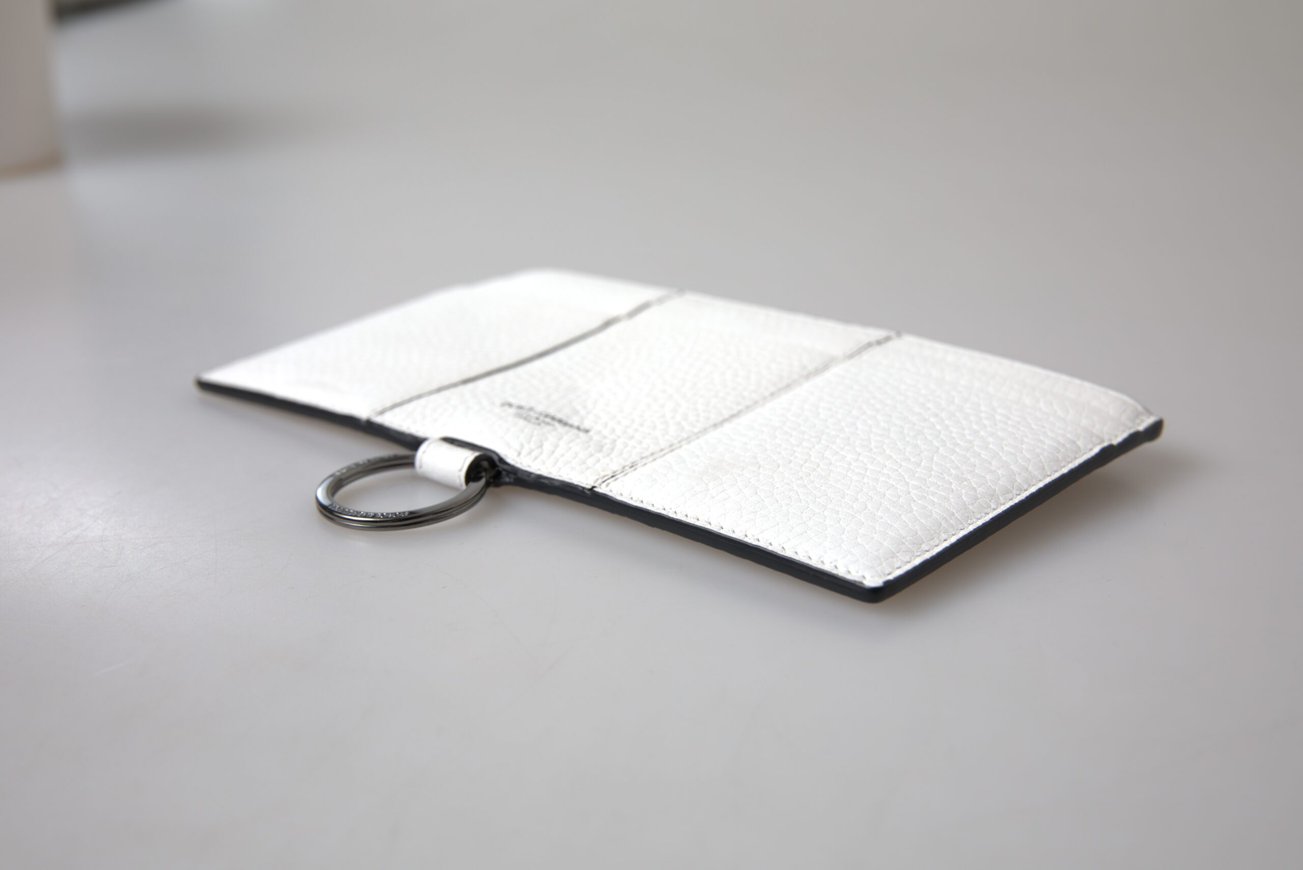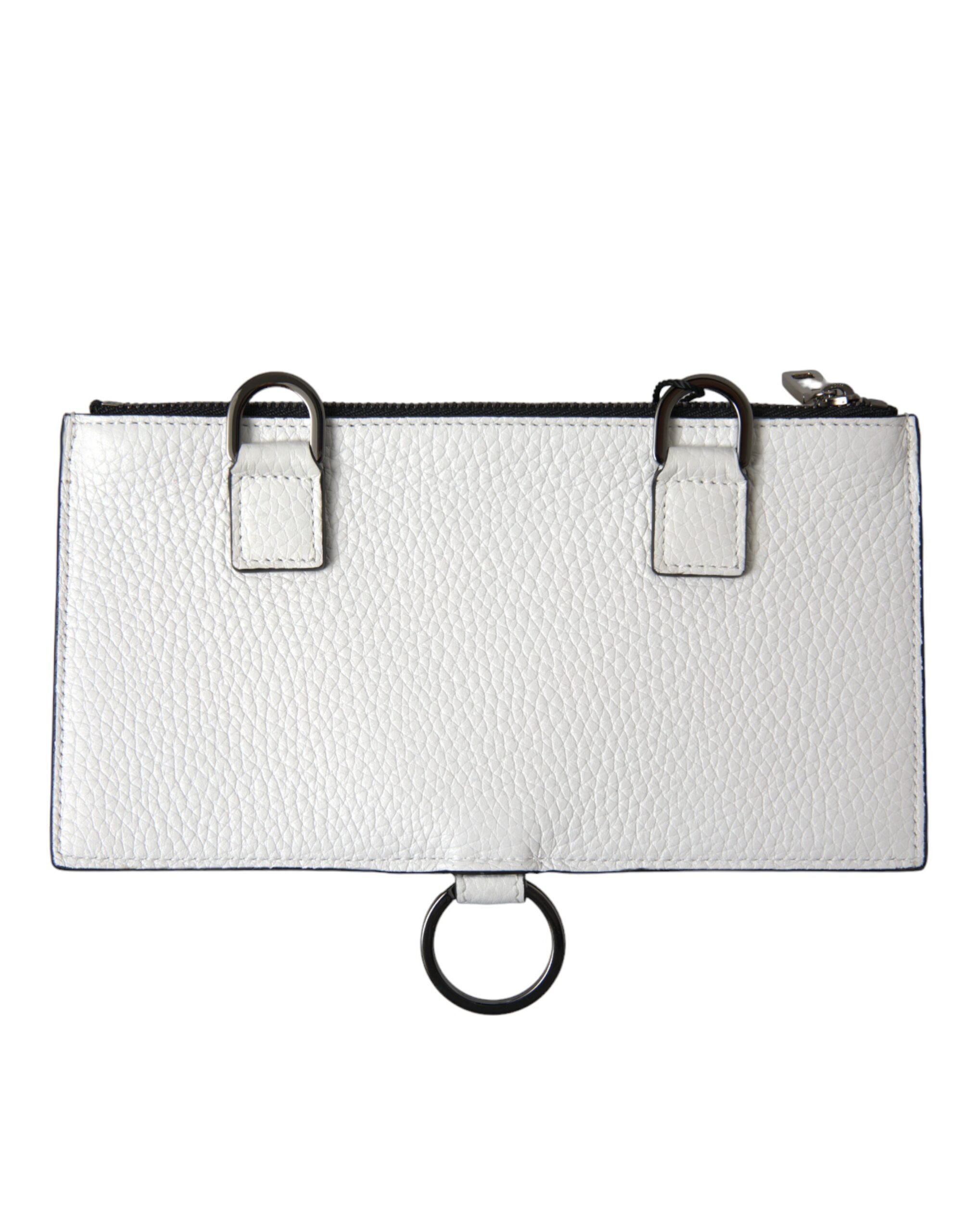 White Calfskin Leather Large Crossbody Card Holder Wallet