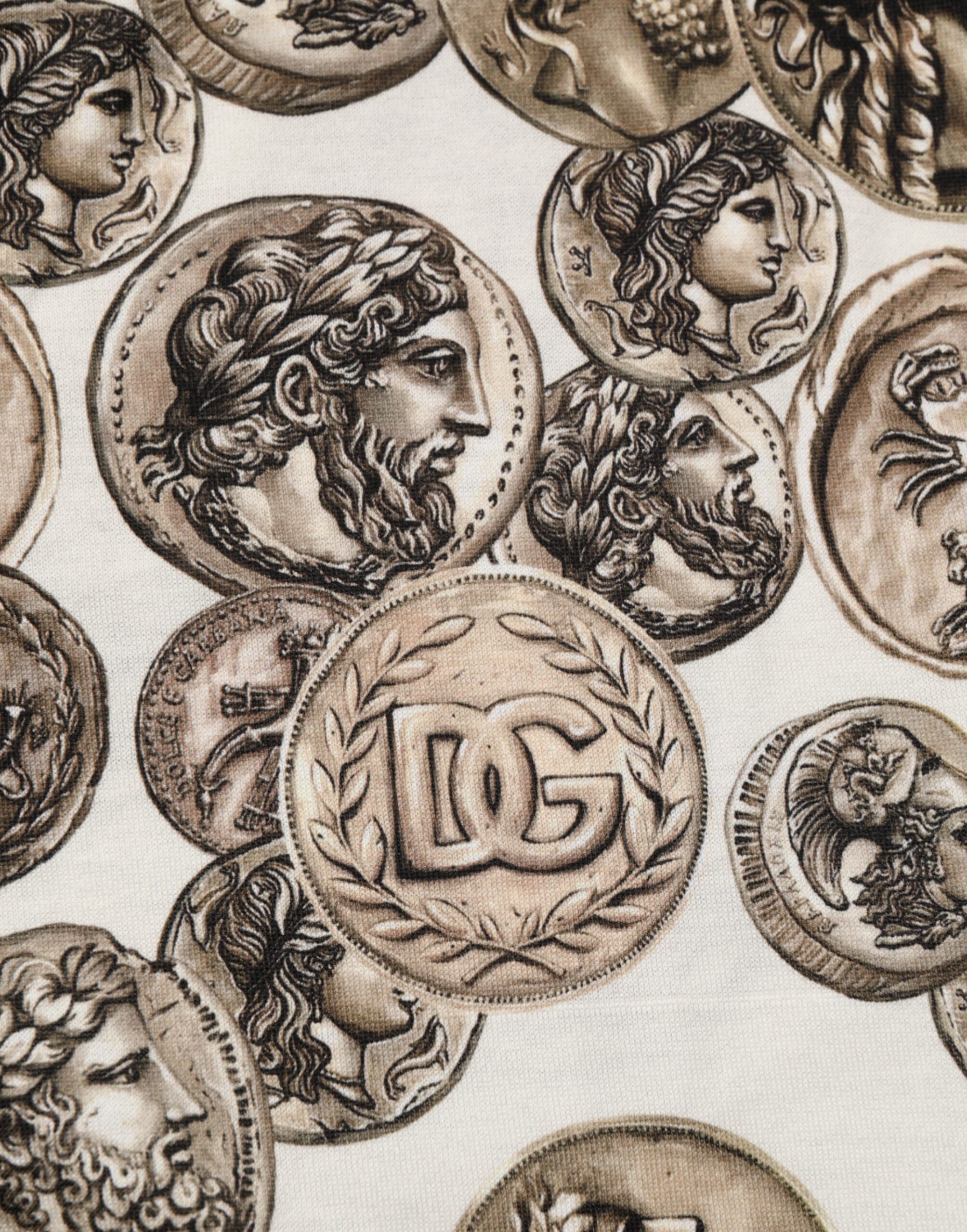 White Coin Print Cotton Crew Neck Men T-shirt