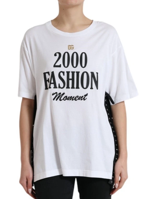 White Cotton 2000 Fashion Print Logo T-shirt