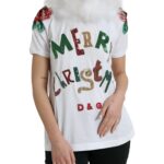 White Cotton Christmas Sequin Fur T-shirt
