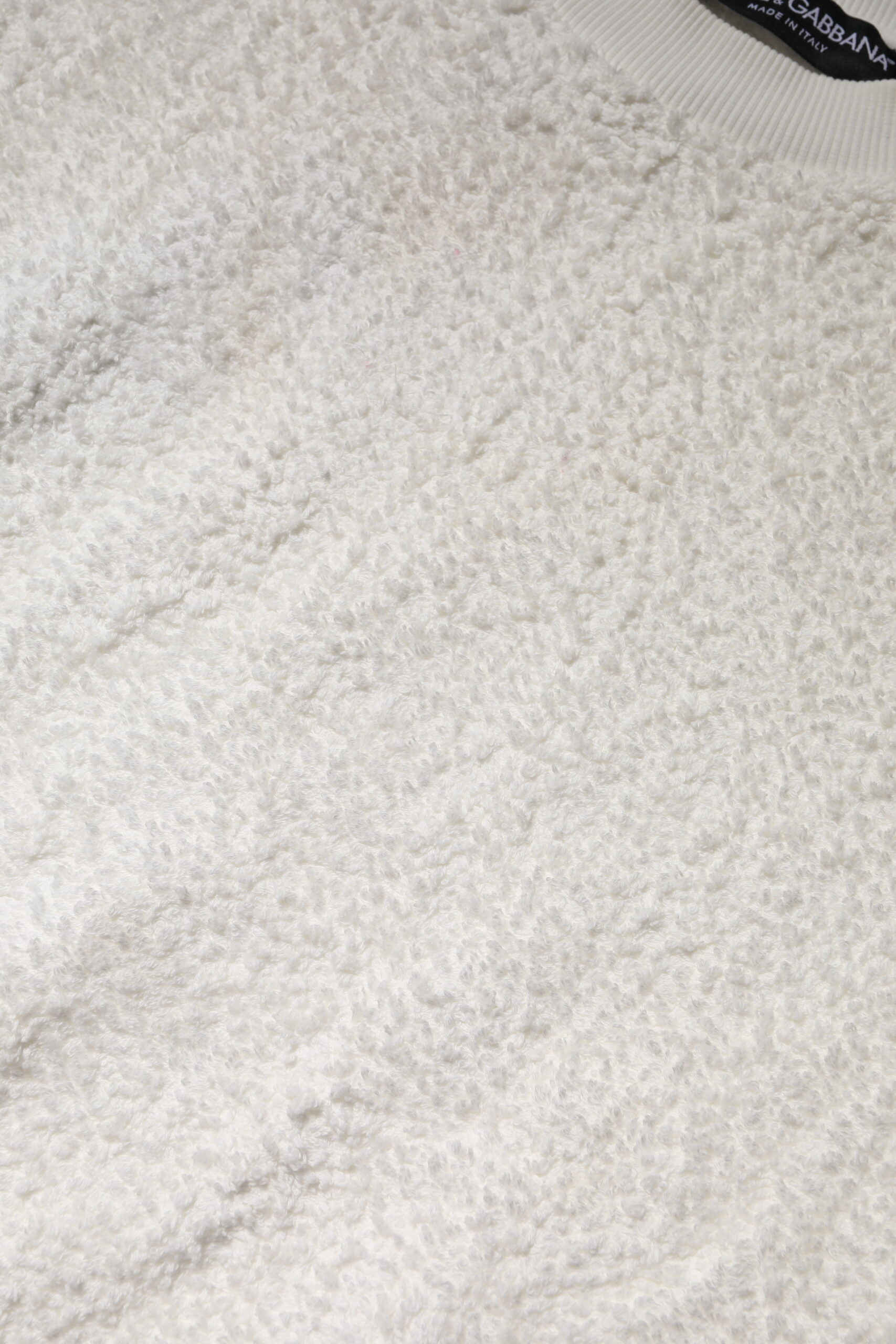 White Cotton Fleece Crew Neck Sweater