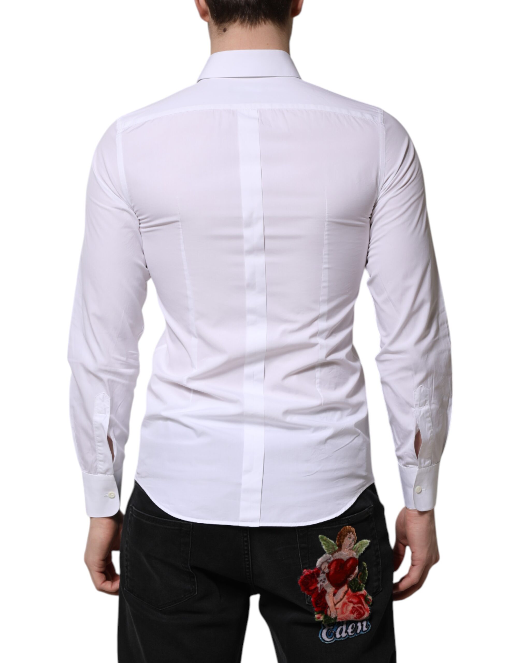 White Cotton GOLD Long Sleeves Men Dress Shirt