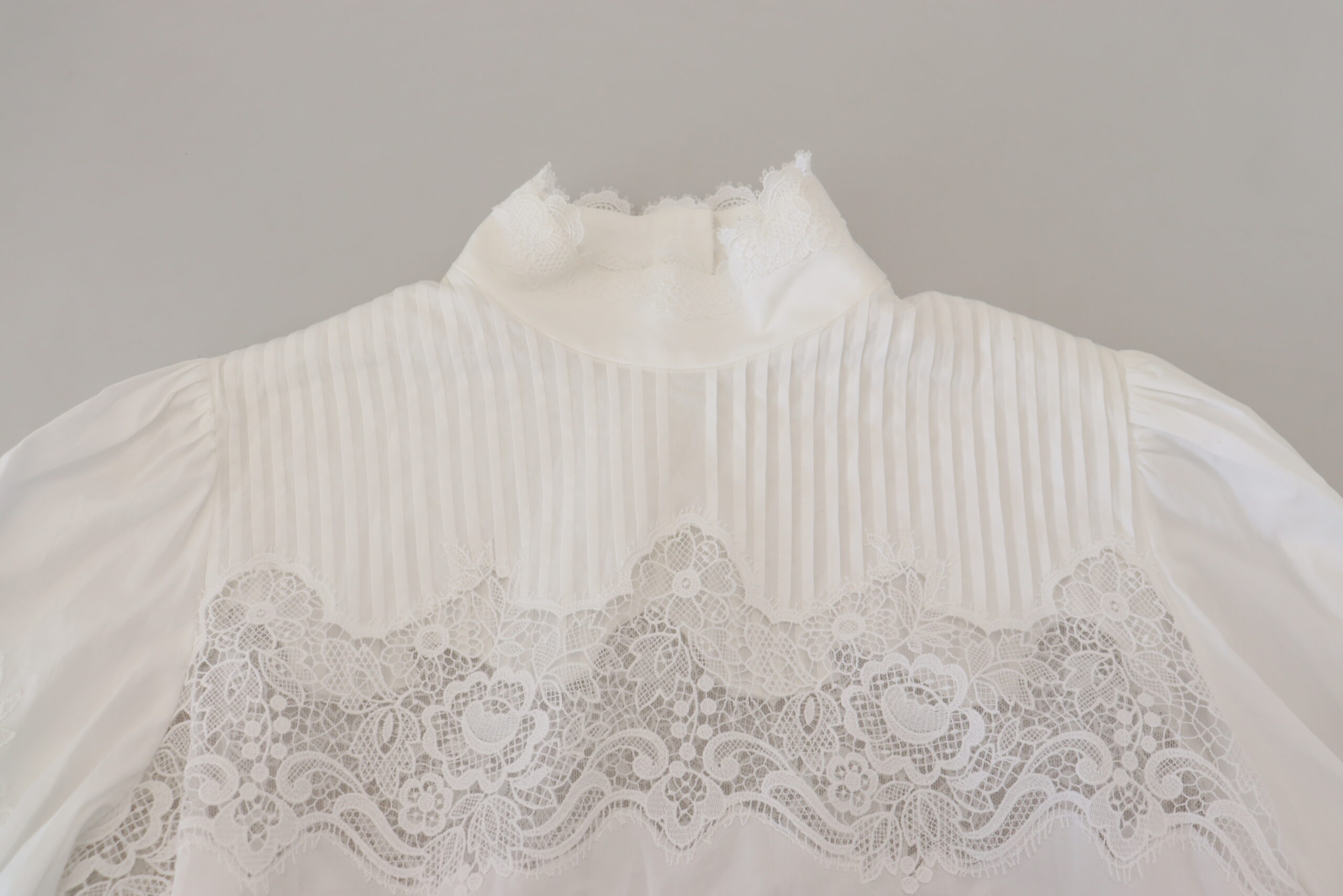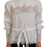 White Cotton Lace Trim Turtle Neck Blouse Top