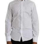 White Cotton Long Sleeve Dress GOLD Shirt