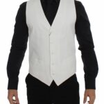 White Cotton Silk Blend Dress Vest Blazer