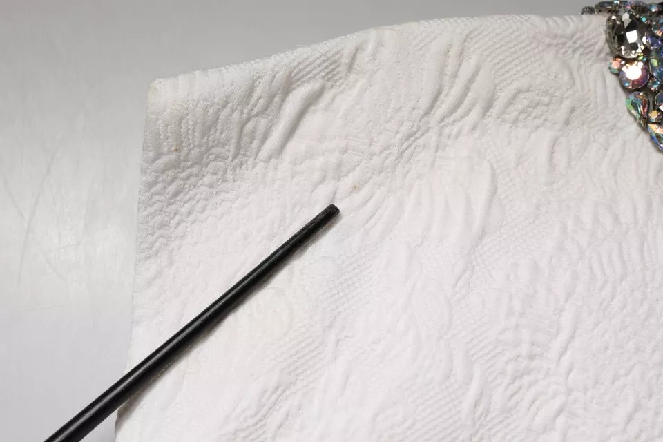 White Crystal Embellished Jacquard Brocade Mini Dress