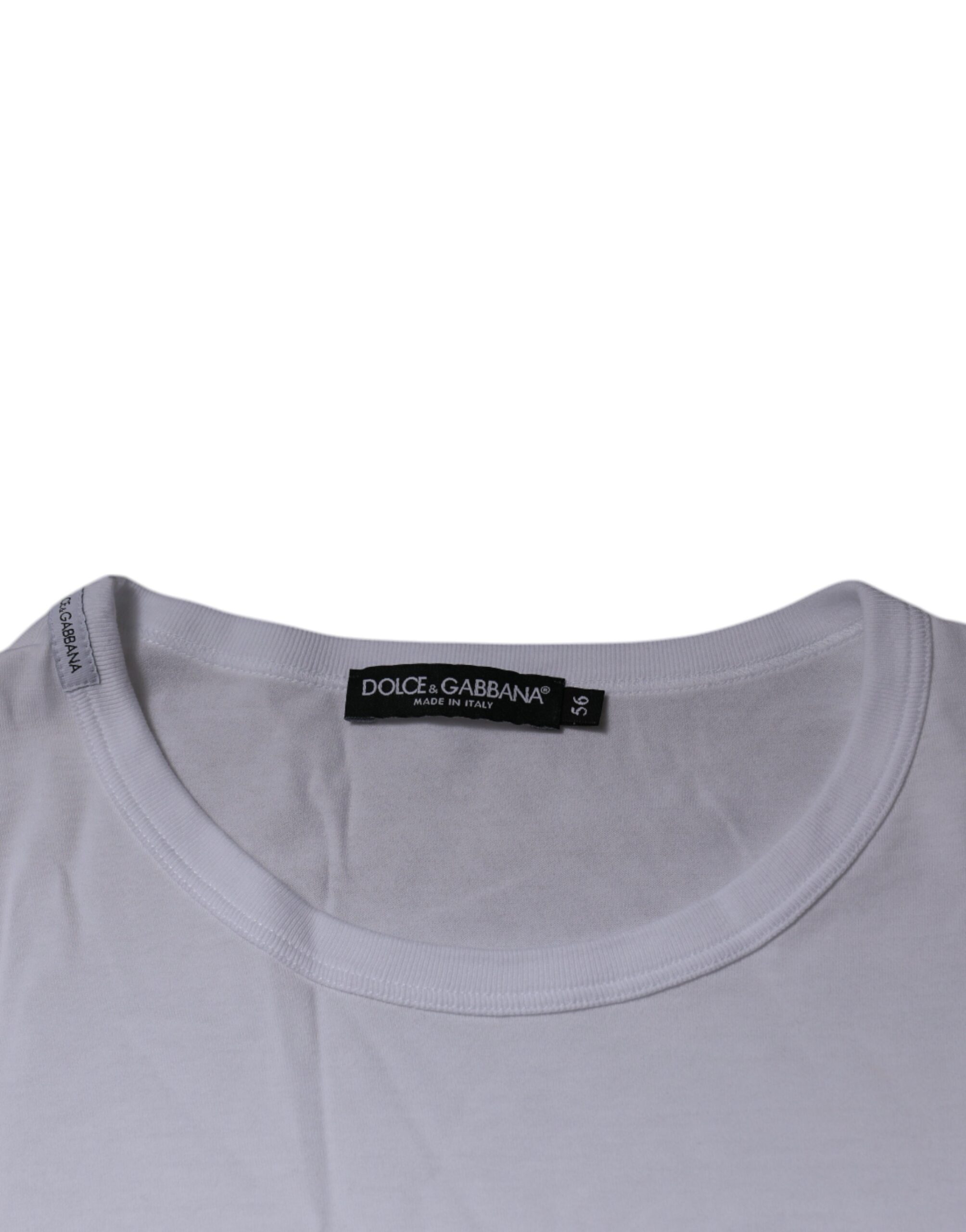 White DG Embroidery Cotton Crew Neck T-shirt