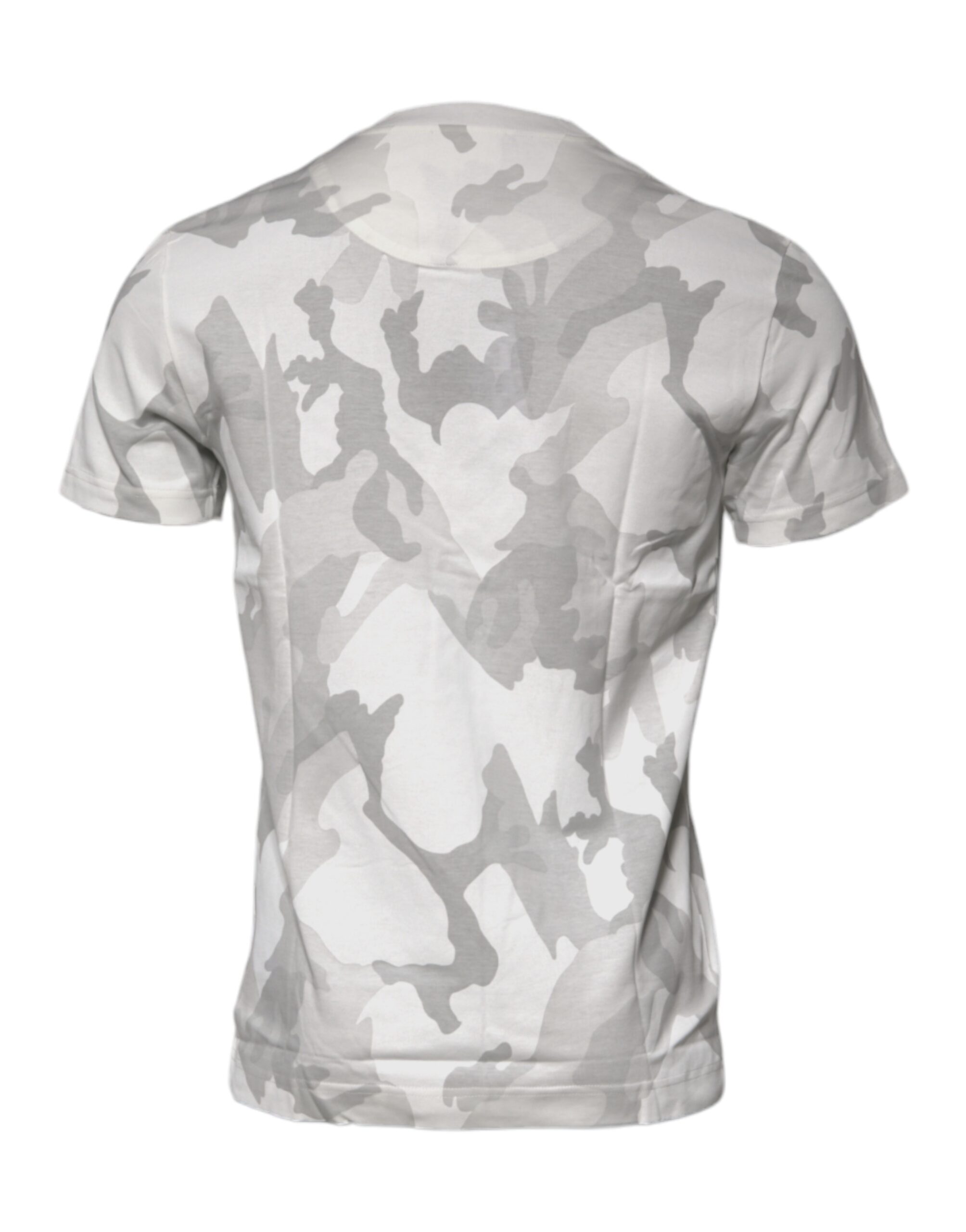 White Gray Camouflage Cotton Crew Neck T-shirt
