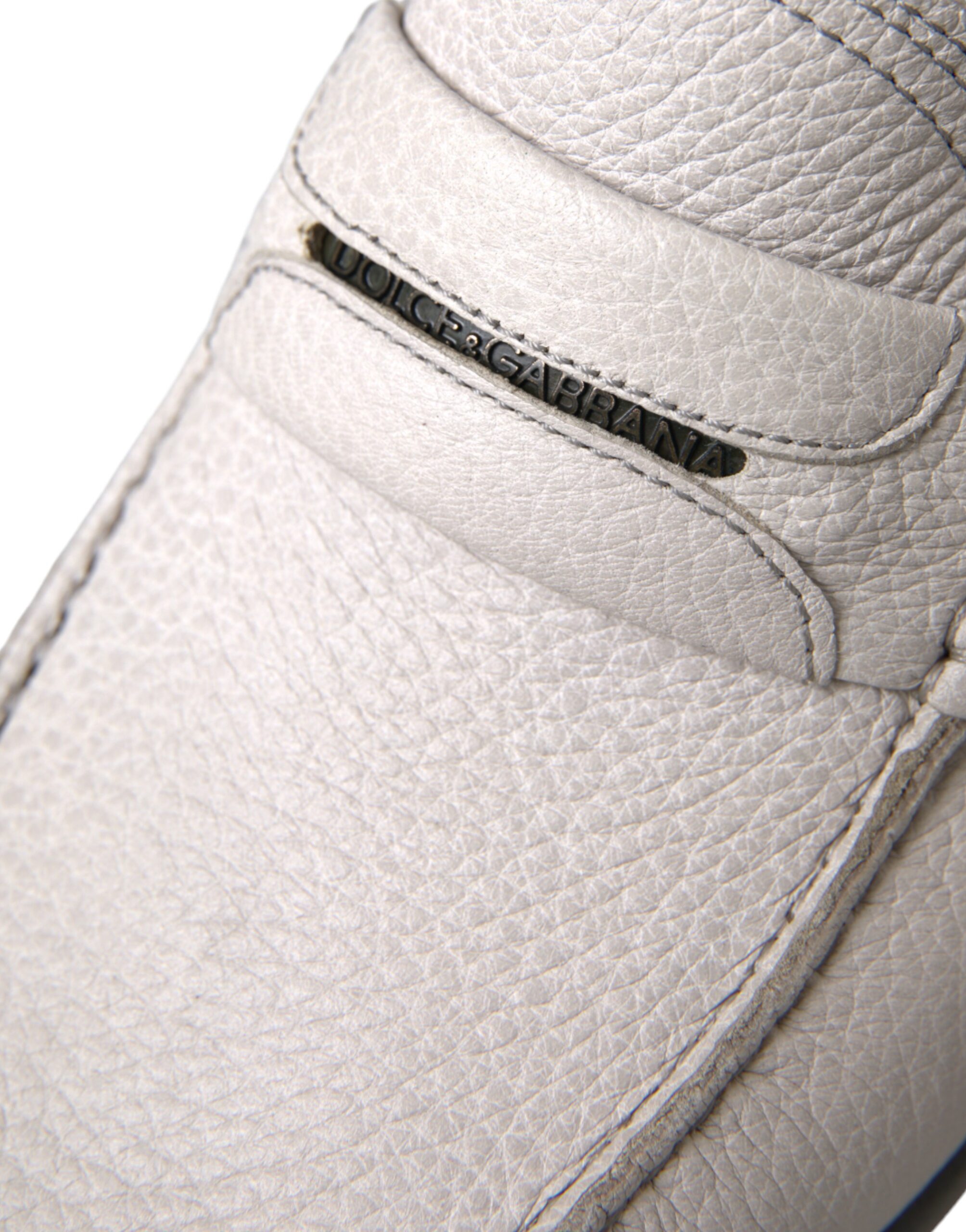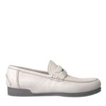 White Gray Leather Slip Mocassin Shoes Loafer