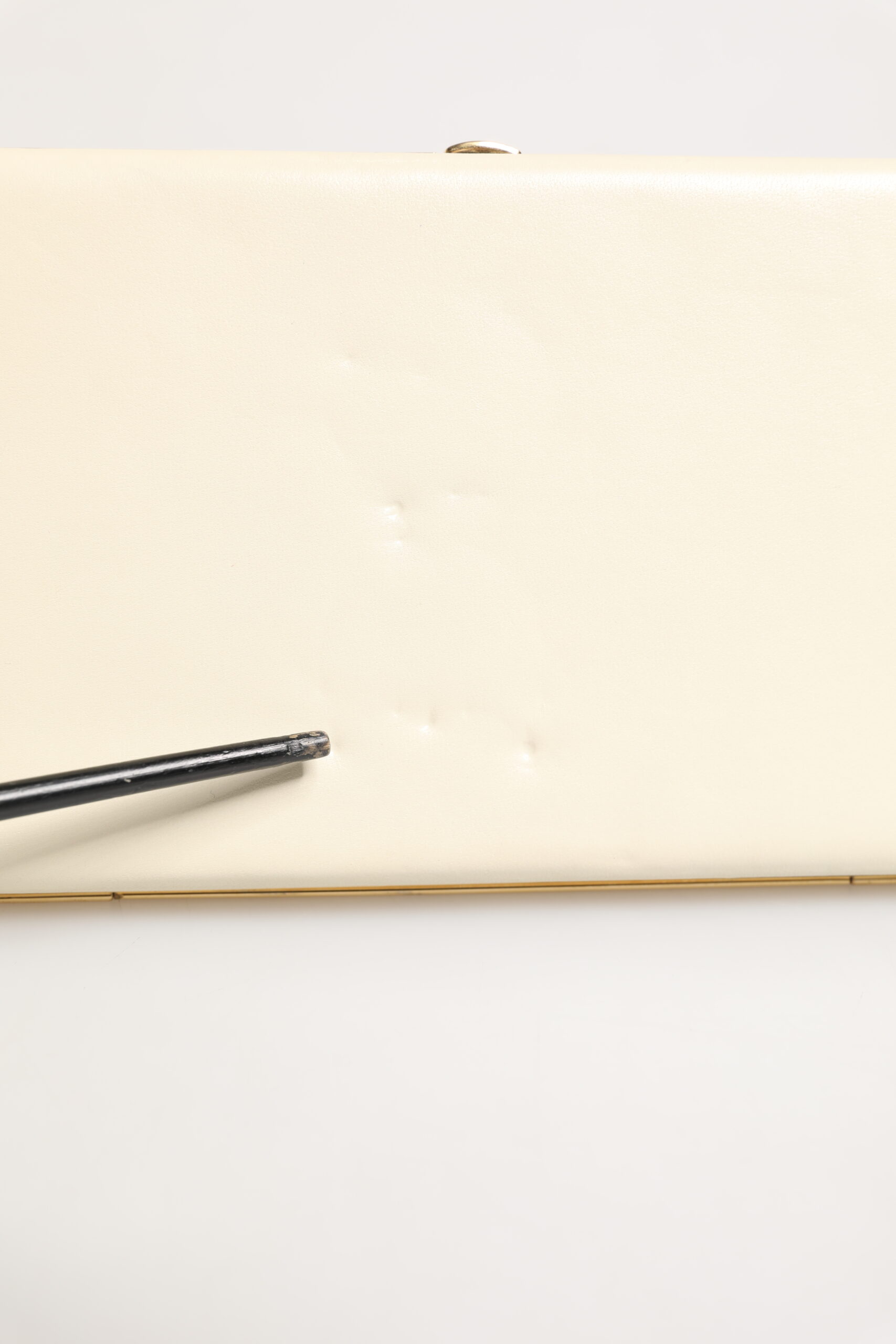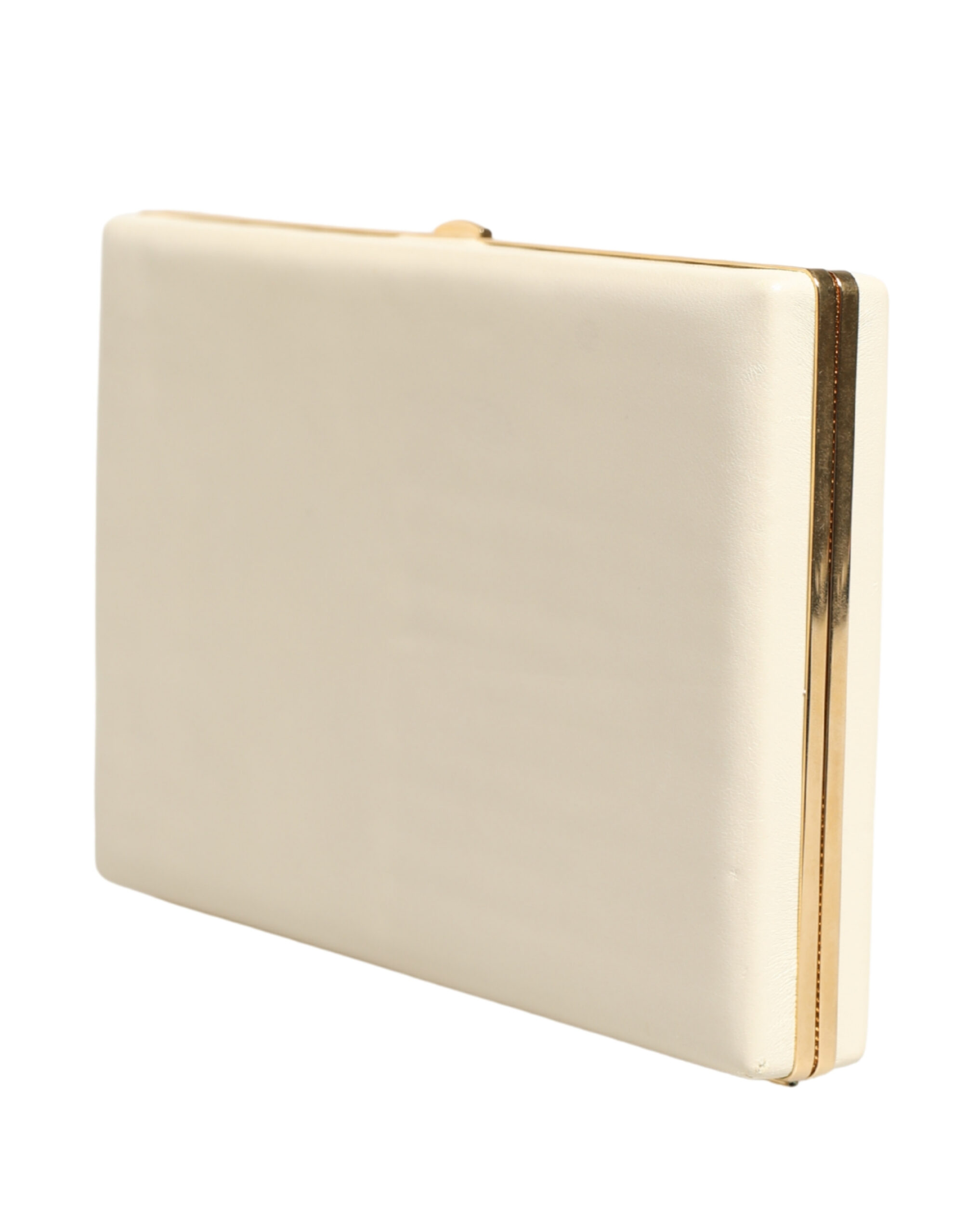 Gorgeous brand new, 100% Authentic Dolce & Gabbana bag is crafted from leather and designed to be worn as a clutch. Perfect for evenings out, it combines elegant style with practical versatility for a refined finishing touch. Model: Clutch miniature purse Color: White with gold metal detailing Material: 80% Lambskin 7% Aluminum 13% Real Brass Lining: 80% Lambskin 7% Aluminum 13% Real Brass Black inner lining Logo details Made in Italy Measurements: 18cm x 11cm x 2cm