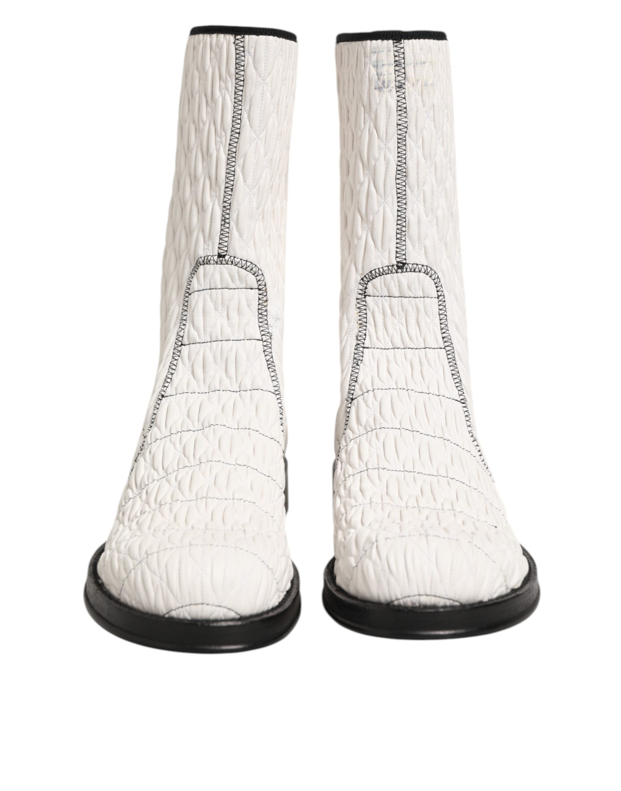 White Lambskin Leather Mid Calf Boots Shoes