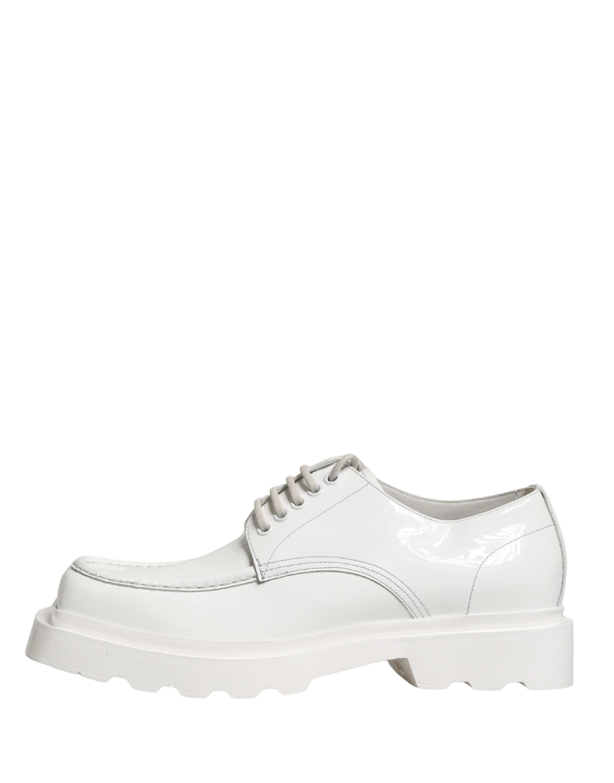 White Leather Chunky Sole Derby Shoes