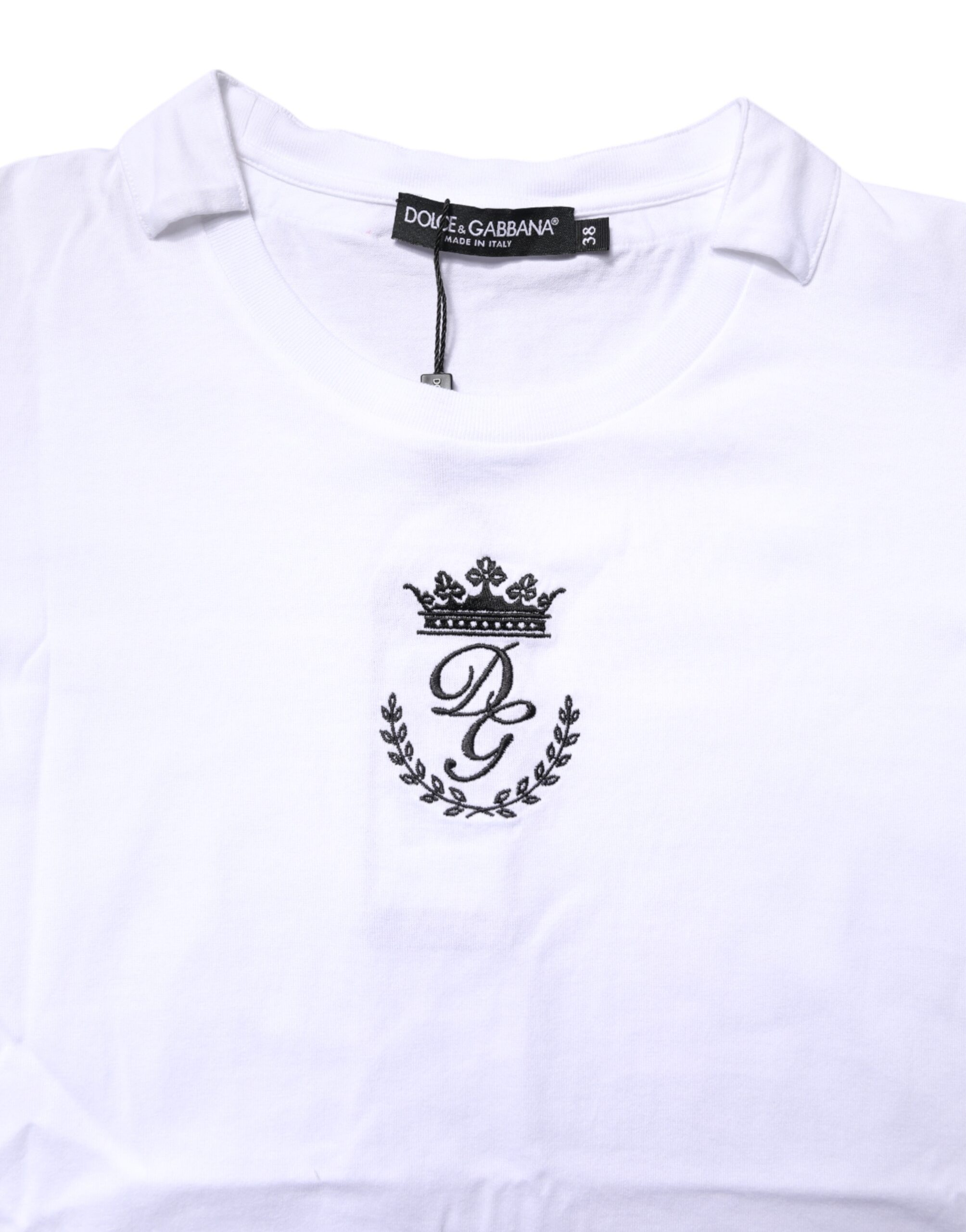 White Logo Crown Cotton Crew Neck T-shirt