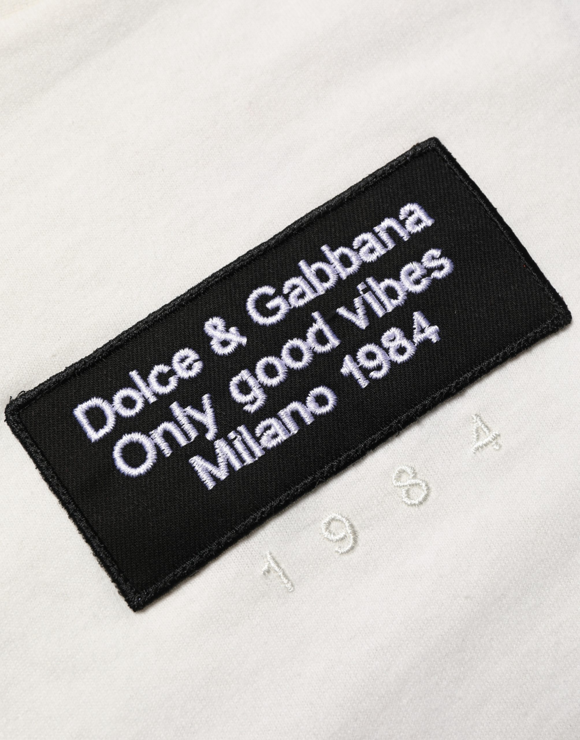 White Logo Patch Cotton Men Crew Neck T-shirt