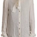 White Patterned Silk Ascot Collar Blouse Top