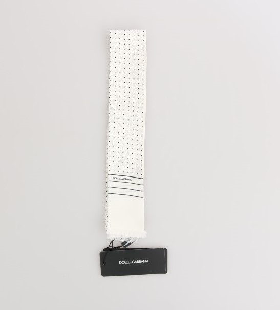 White Polka Dotted Silk Skinny Scarf