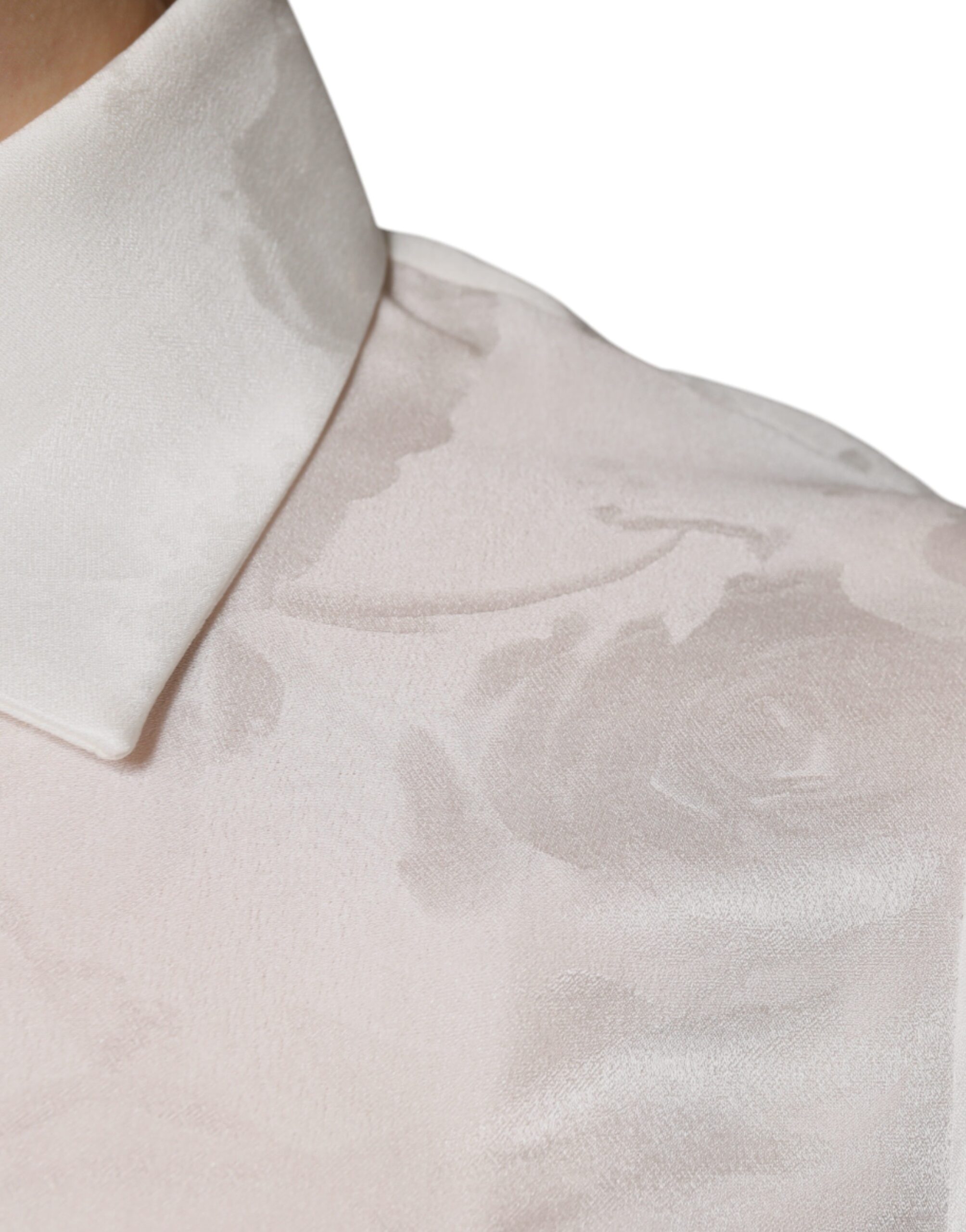 White Silk Collared Long Sleeves Shirt Top