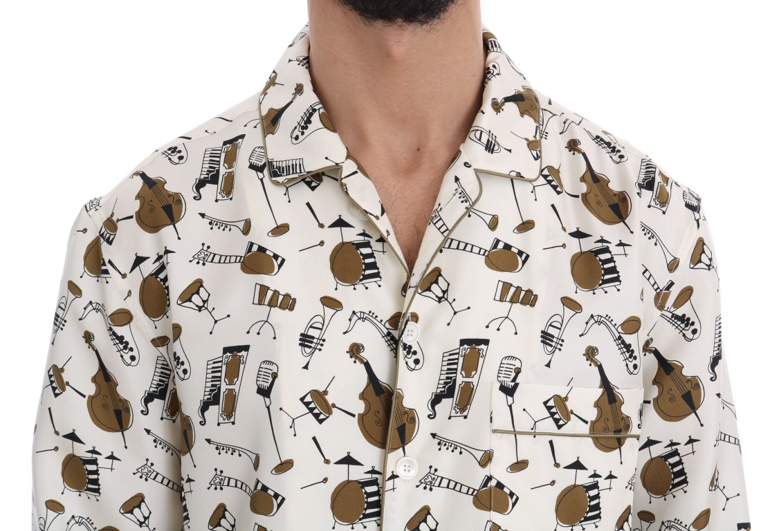 White Silk JAZZ Motive Print Shirt