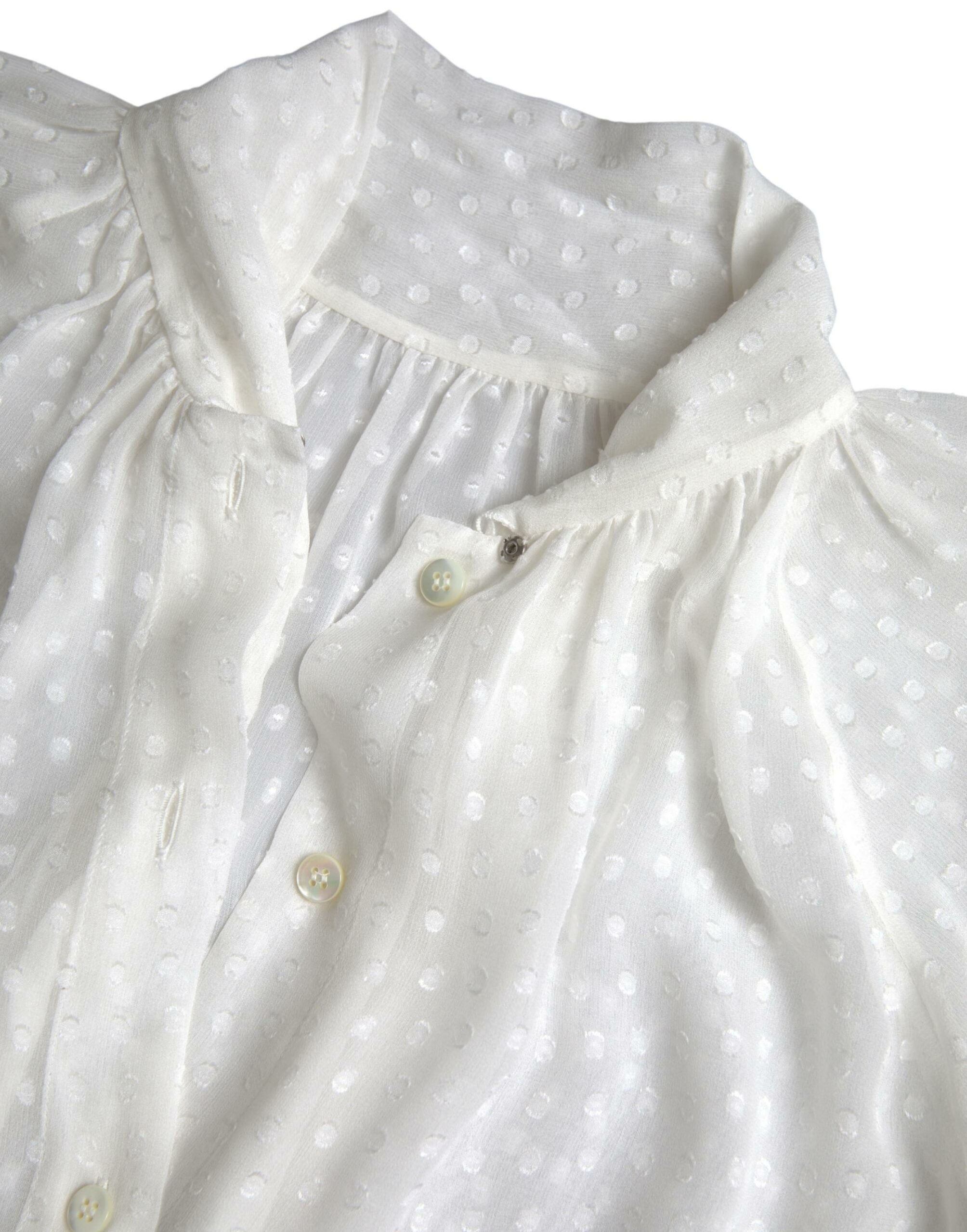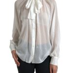 White Silk Sheer Tied Neck Polka Dots Blouse
