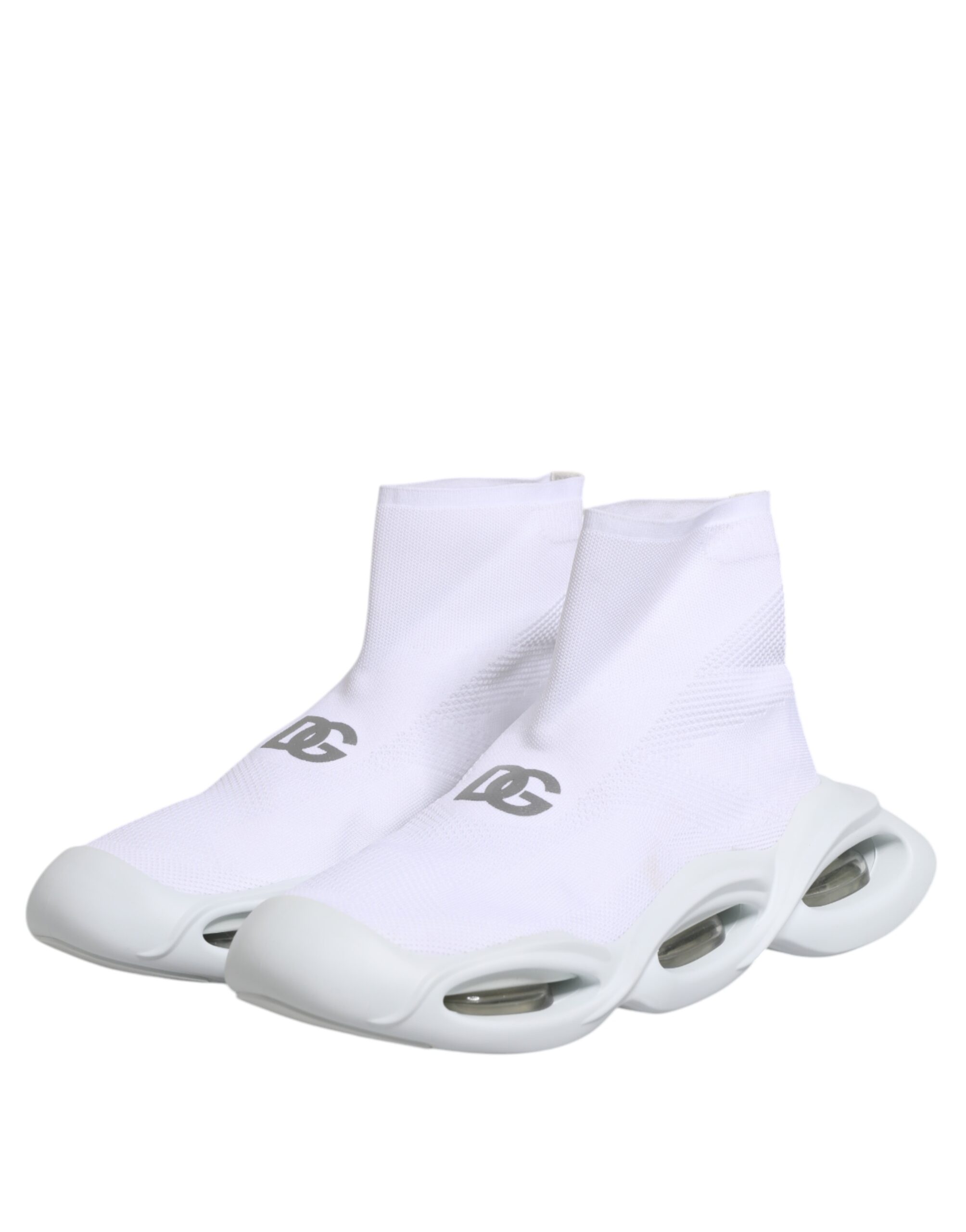 White Silver Slip On Wave Socks Sneakers Shoes