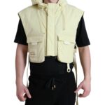 Yellow Nylon Hooded Sportswear Vest Jacket
